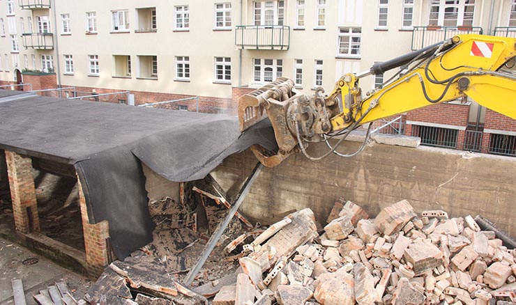 Im Außenbereich hat sich inzwischen ein riesiger Bagger der Baracken angenommen,