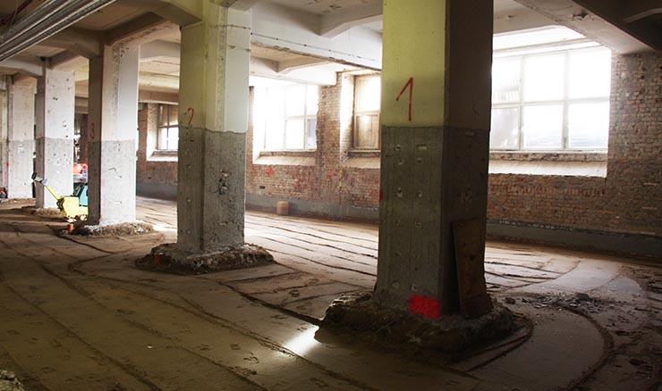 wird nun bald abgezogen. Die Estriche sind größtenteils abgebrochen und der Schutt ist beräumt.